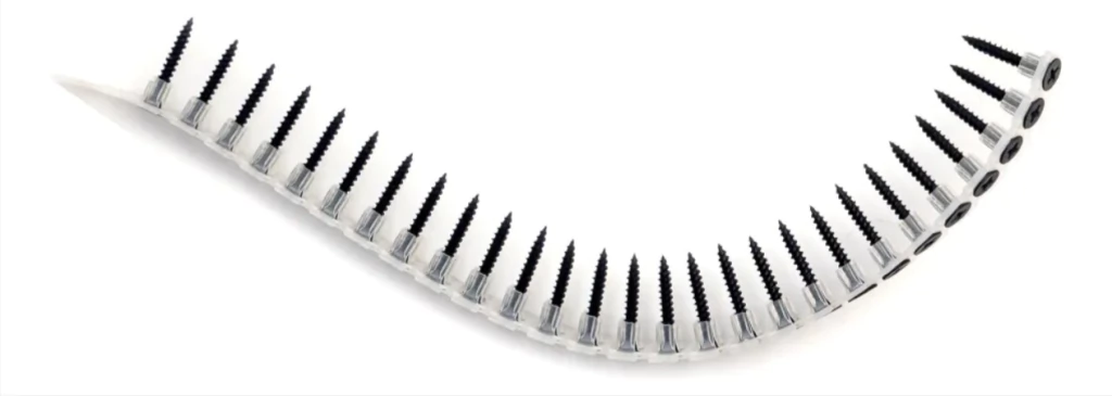 Aplicación automática: Las tiras permiten una aplicación contínua sin necesidad de cargar manualmente cada tornillo, optimizando el proceso.